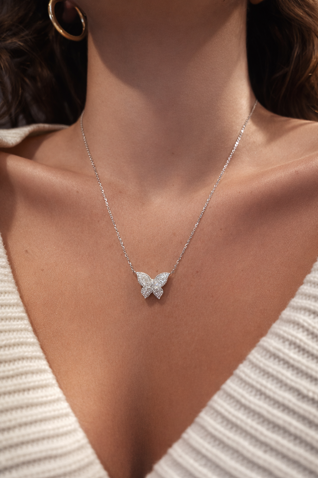 14kt Gold Pave Diamond Butterfly Necklace