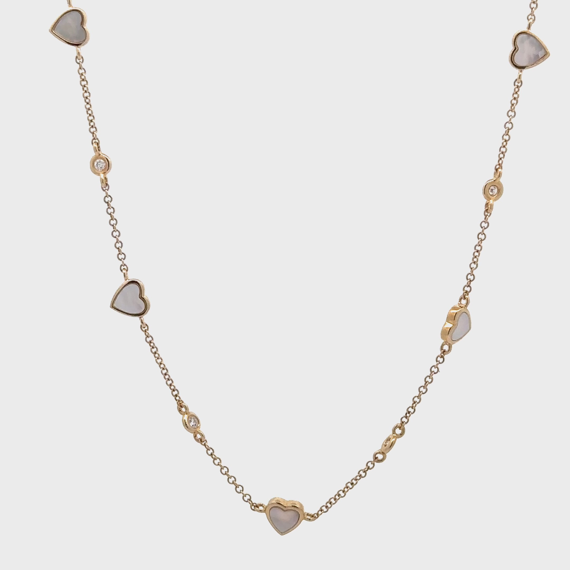 WD1334 14kt Gold Mother of Pearl Heart Necklace with Diamond Detail