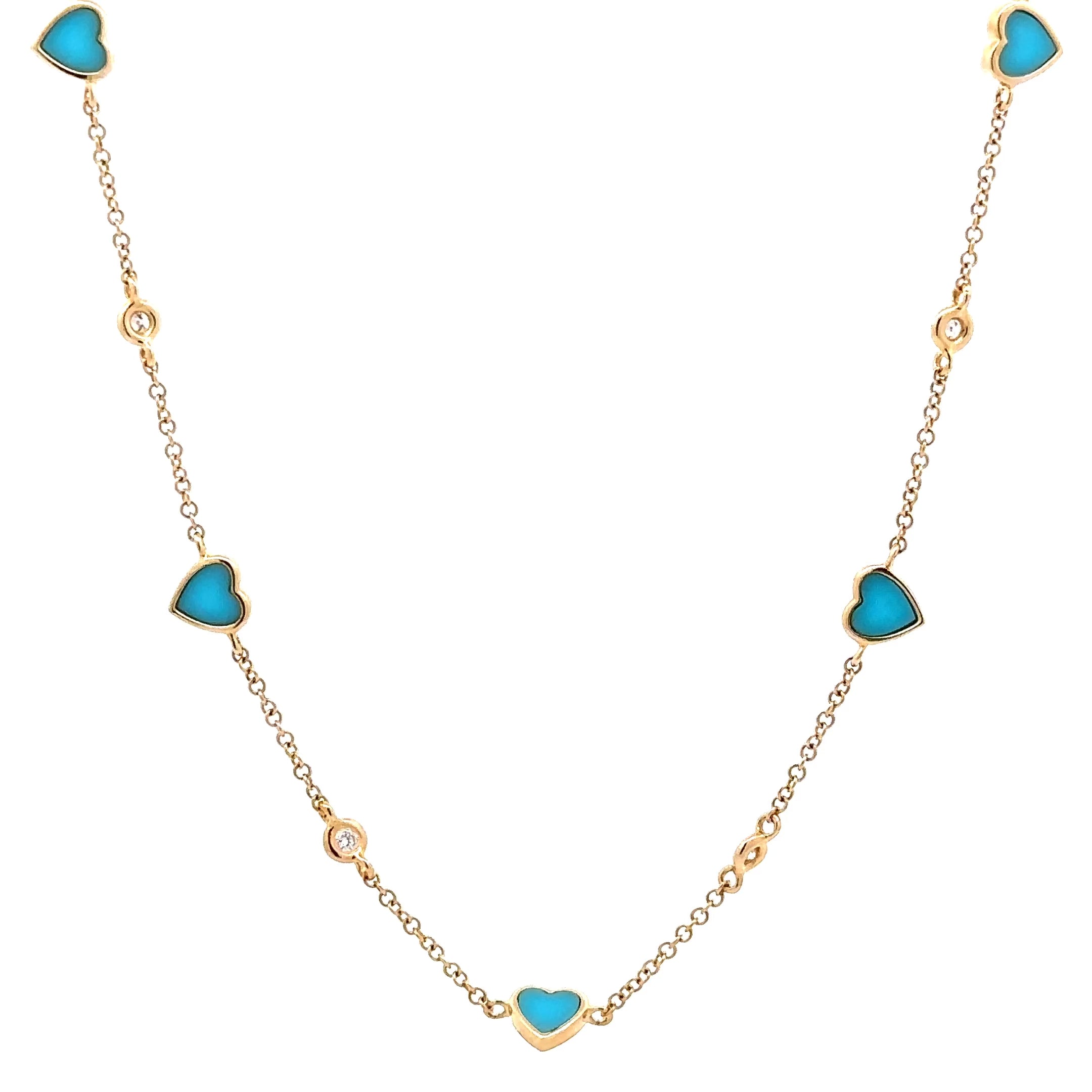 WD1333 14kt Gold Turquoise Heart Necklace with Diamond Detail