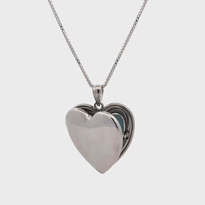 Capture memories with this exquisite heart shaped locket necklace. Crafted from silver with rhodium finish, this timeless piece opens to reveal space for cherished photos or mementos. Suspended on a delicate chain, it's a sentimental keepsake to hold close to your heart.