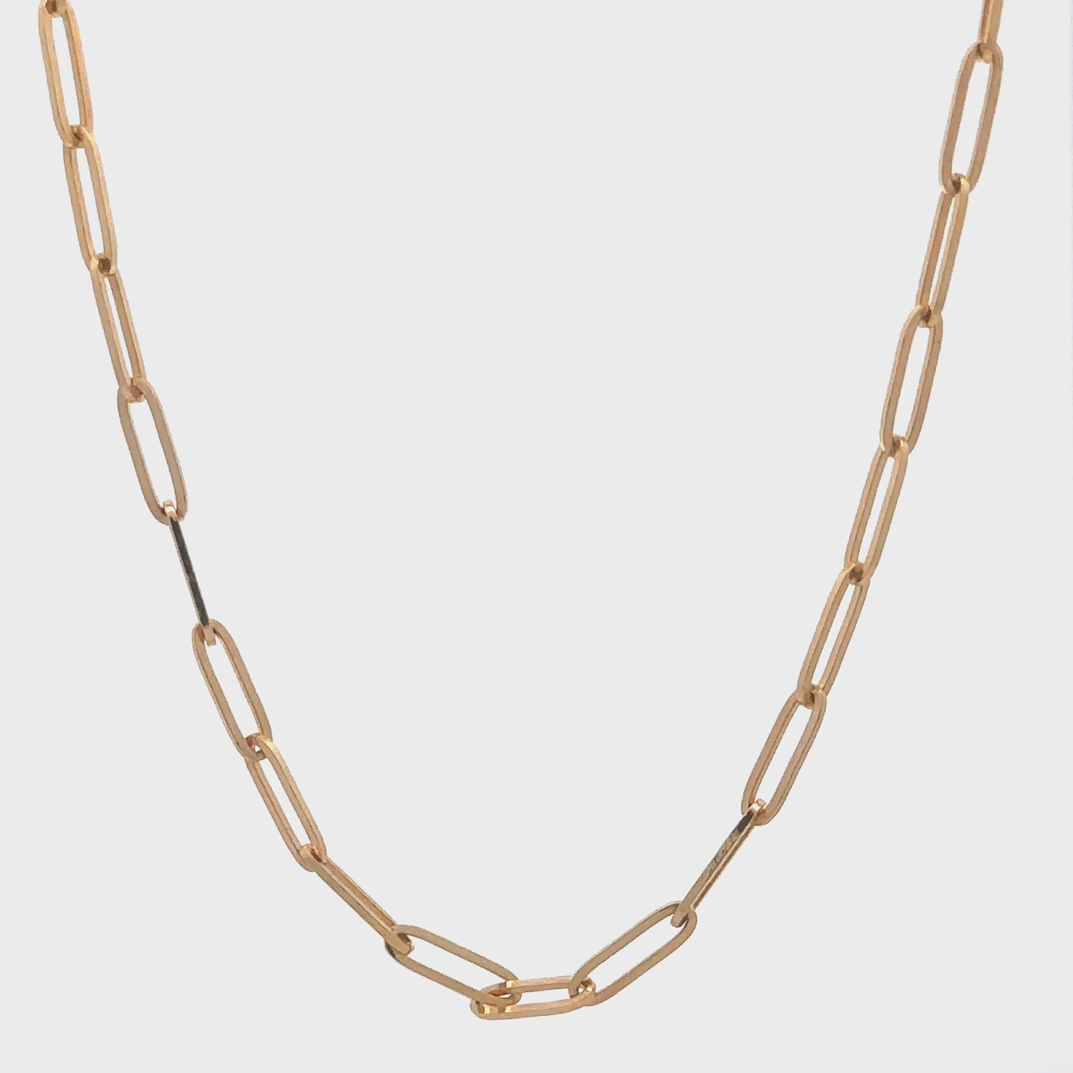 This stunning 14kt gold paperlink chain exudes elegance and sophistication. Its intricate design and polished finish make it a versatile accessory that can elevate any outfit, whether casual or formal. Perfect for layering or wearing alone.