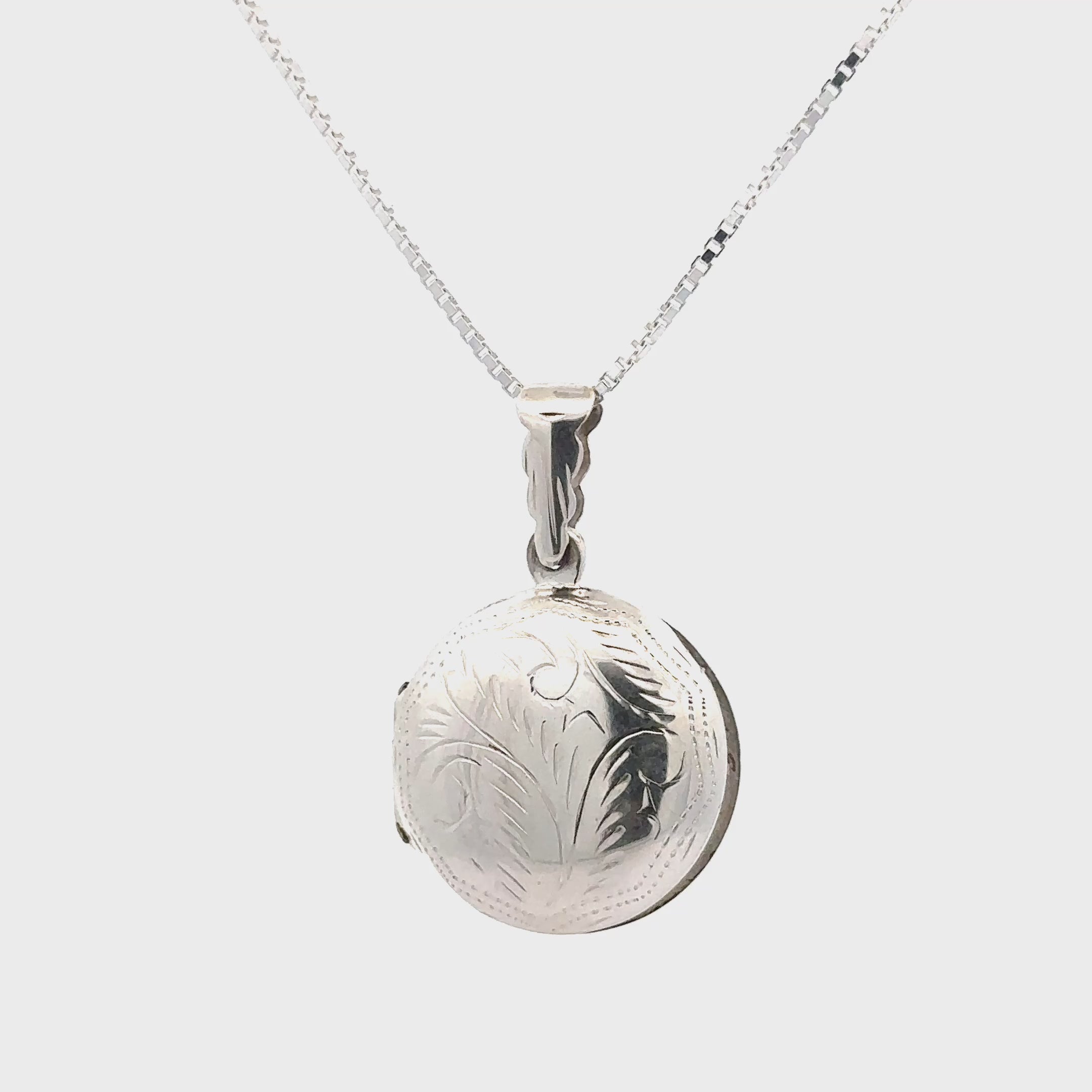 Elevate your style with this elegant silver locket necklace. The round locket pendant features intricate custom engravings, adding a touch of vintage charm. Crafted from polished italin sterling silver, it hangs gracefully from a delicate chain, creating a timeless piece to cherish.