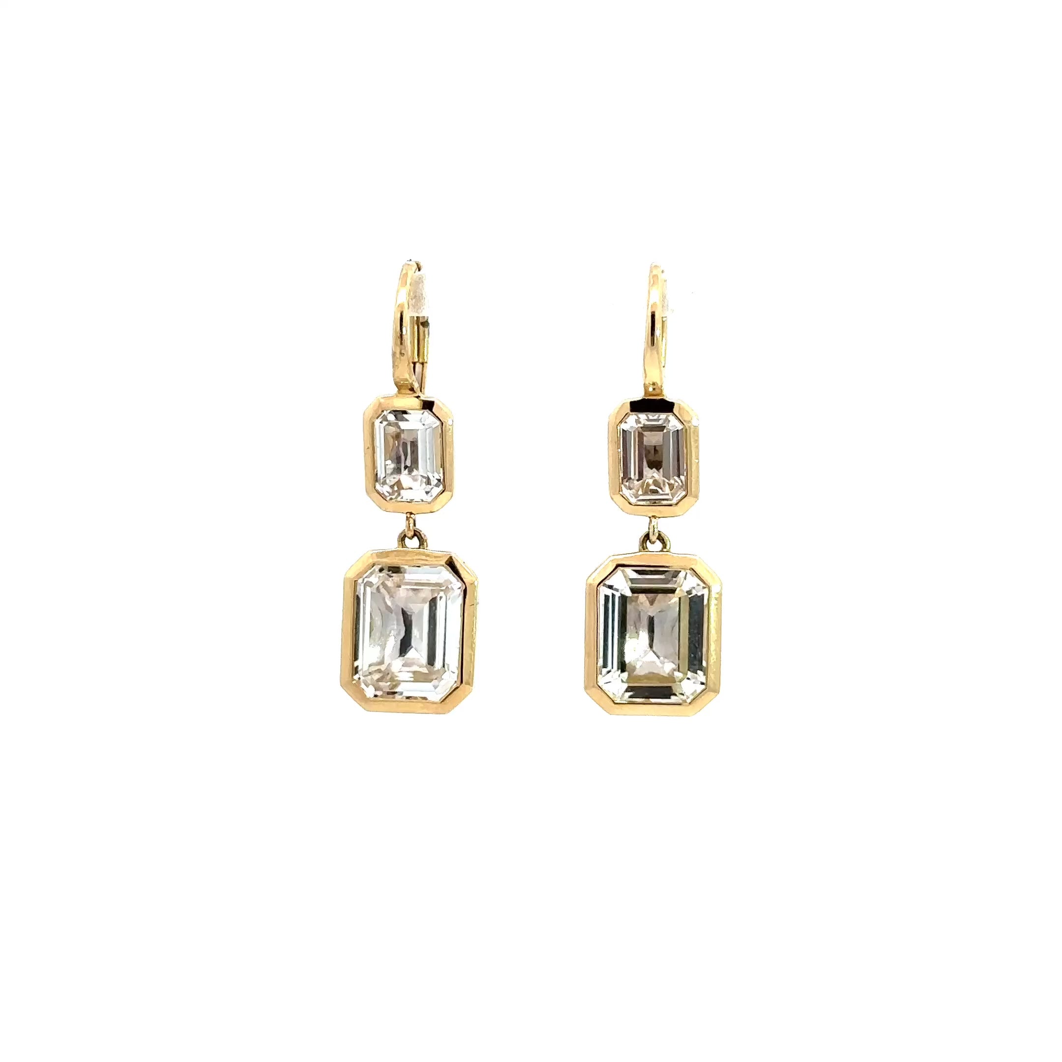 Introducing our luxurious 14 karat yellow gold drop earrings adorned with captivating white topaz gemstones. Crafted with utmost precision, these mesmerizing pieces exude elegance and sophistication. The luminous 14 karat yellow gold complements the inherent radiance of the high-quality white topaz gemstones.