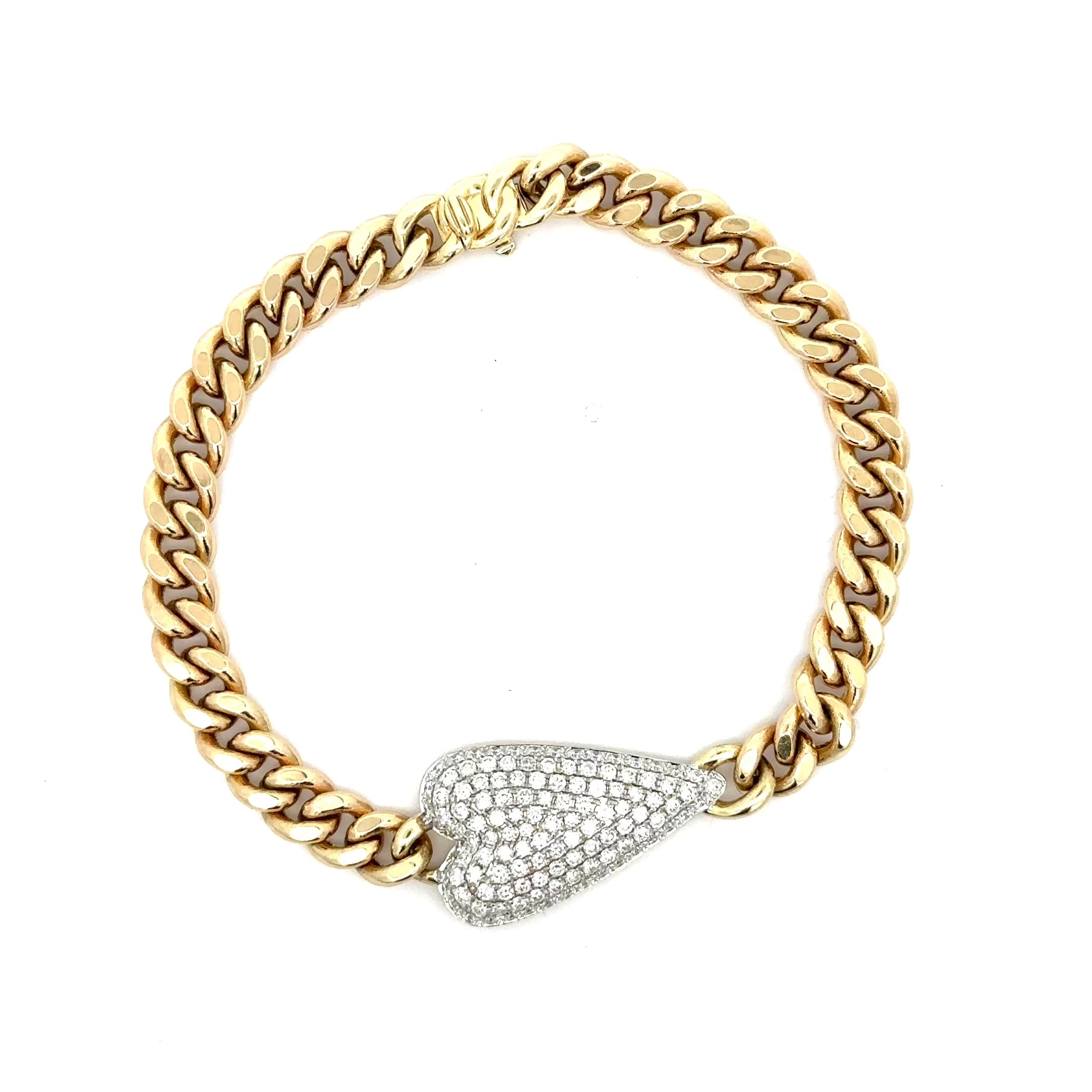 WD1242 14kt Gold Cuban Link Chain with Pave Diamond Heart Bracelet