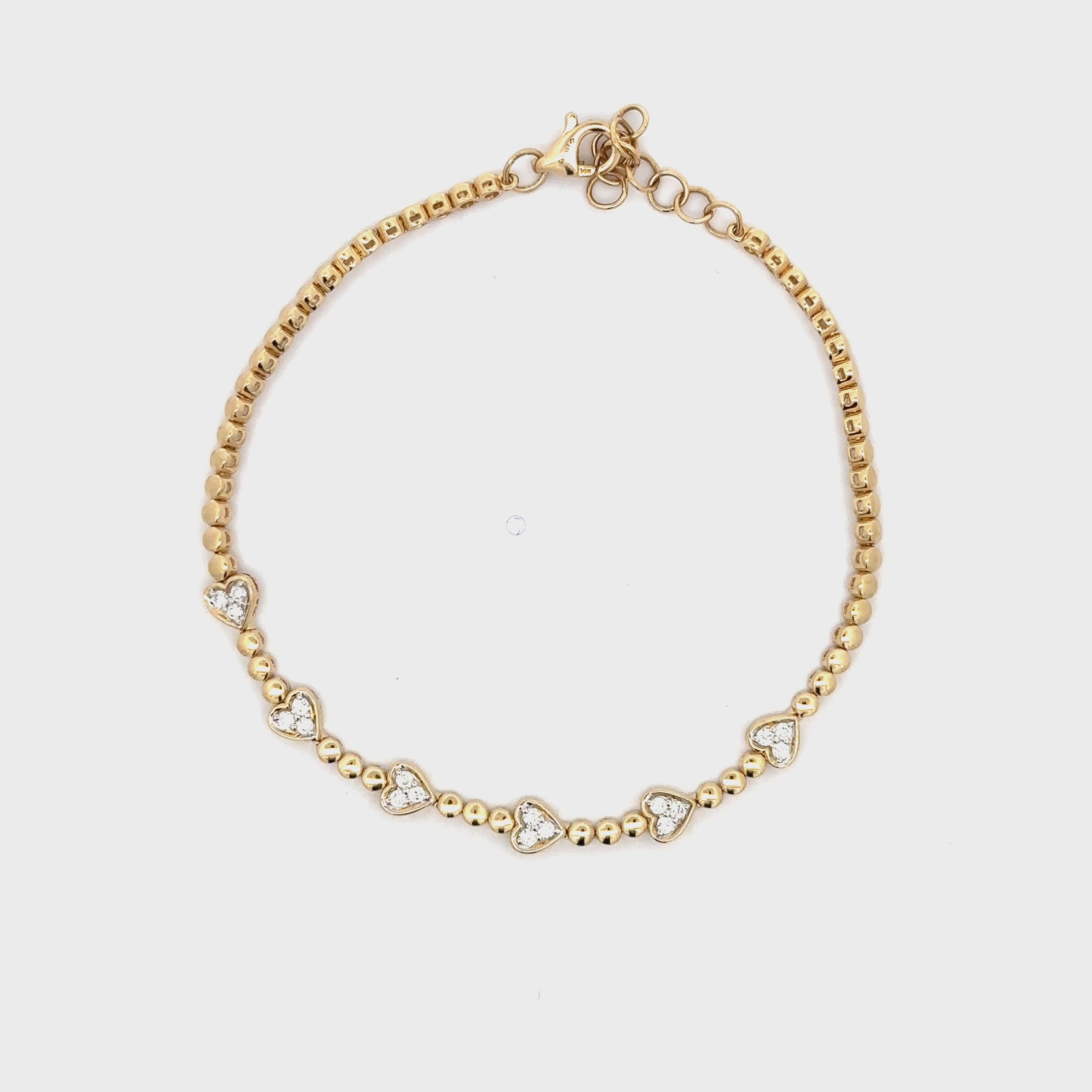 Introducing our exquisite 14 Karat Heart Bracelet with Diamond Detail, a captivating masterpiece that embraces the essence of elegance and timeless beauty.
