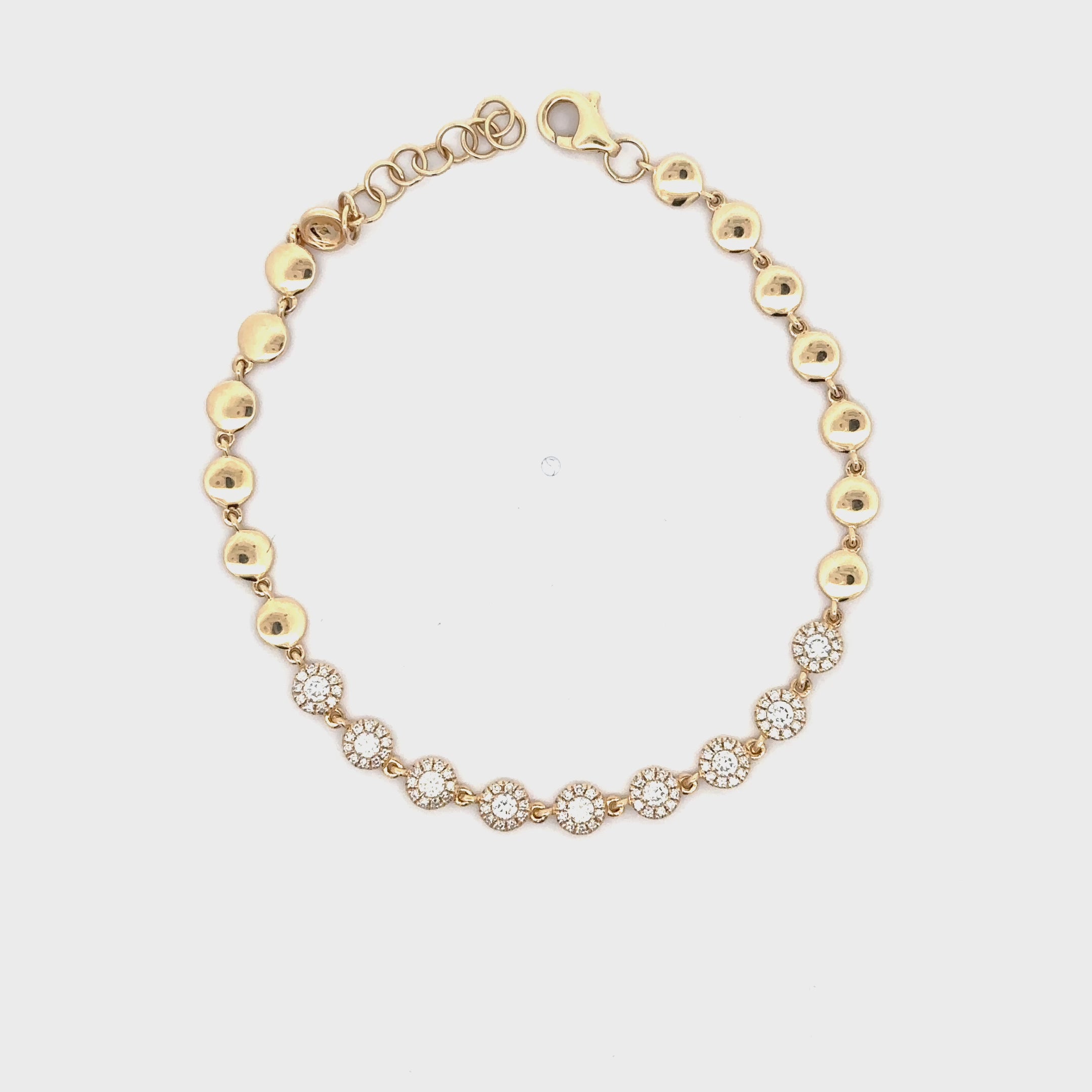 Introducing our exquisite 14-karat yellow gold diamond bracelet, a true epitome of elegance and luxury. Crafted with the finest materials, this dazzling piece is designed to make heads turn. Gleaming in radiant 14-karat yellow gold, this bracelet exudes a captivating brilliance that speaks volumes about your refined taste.