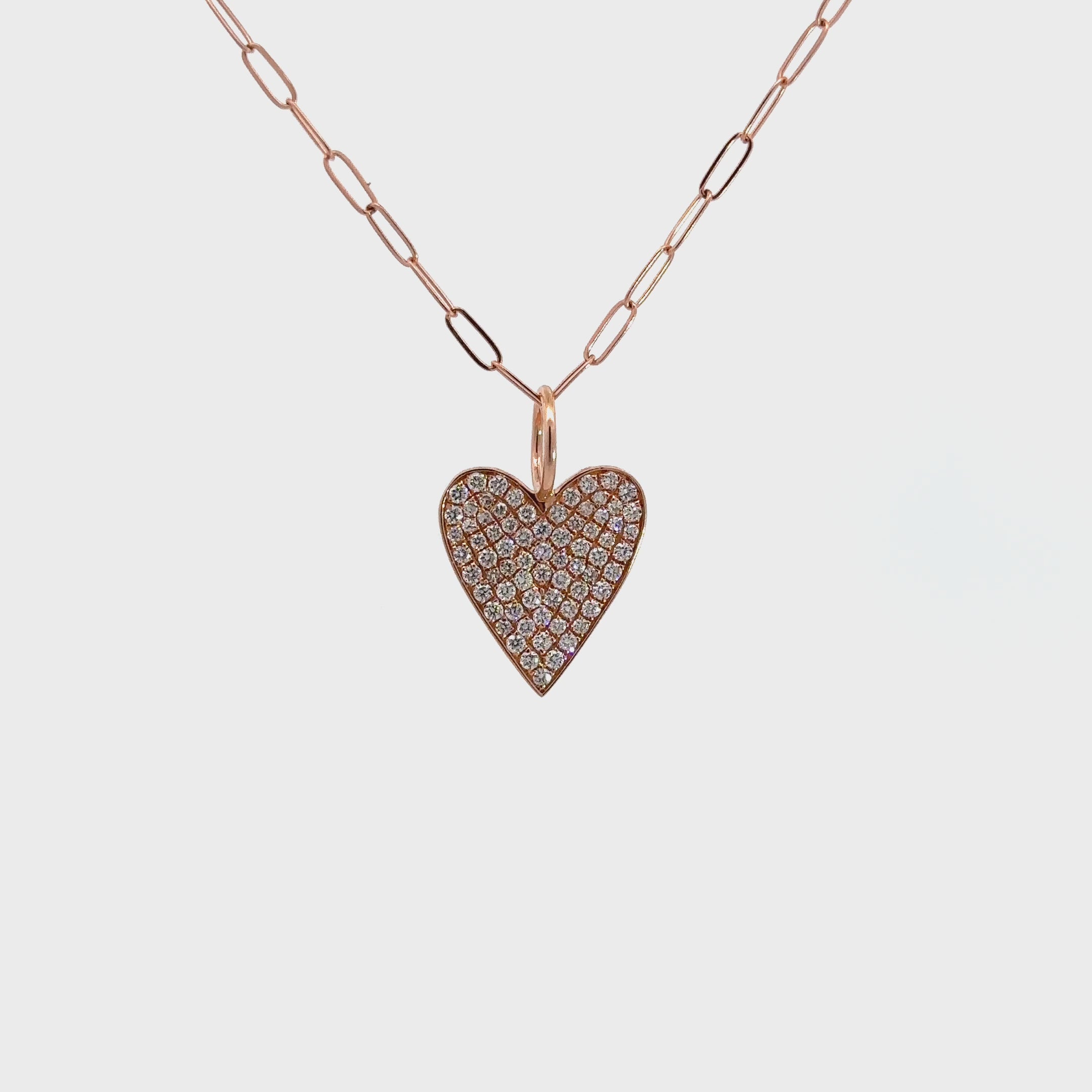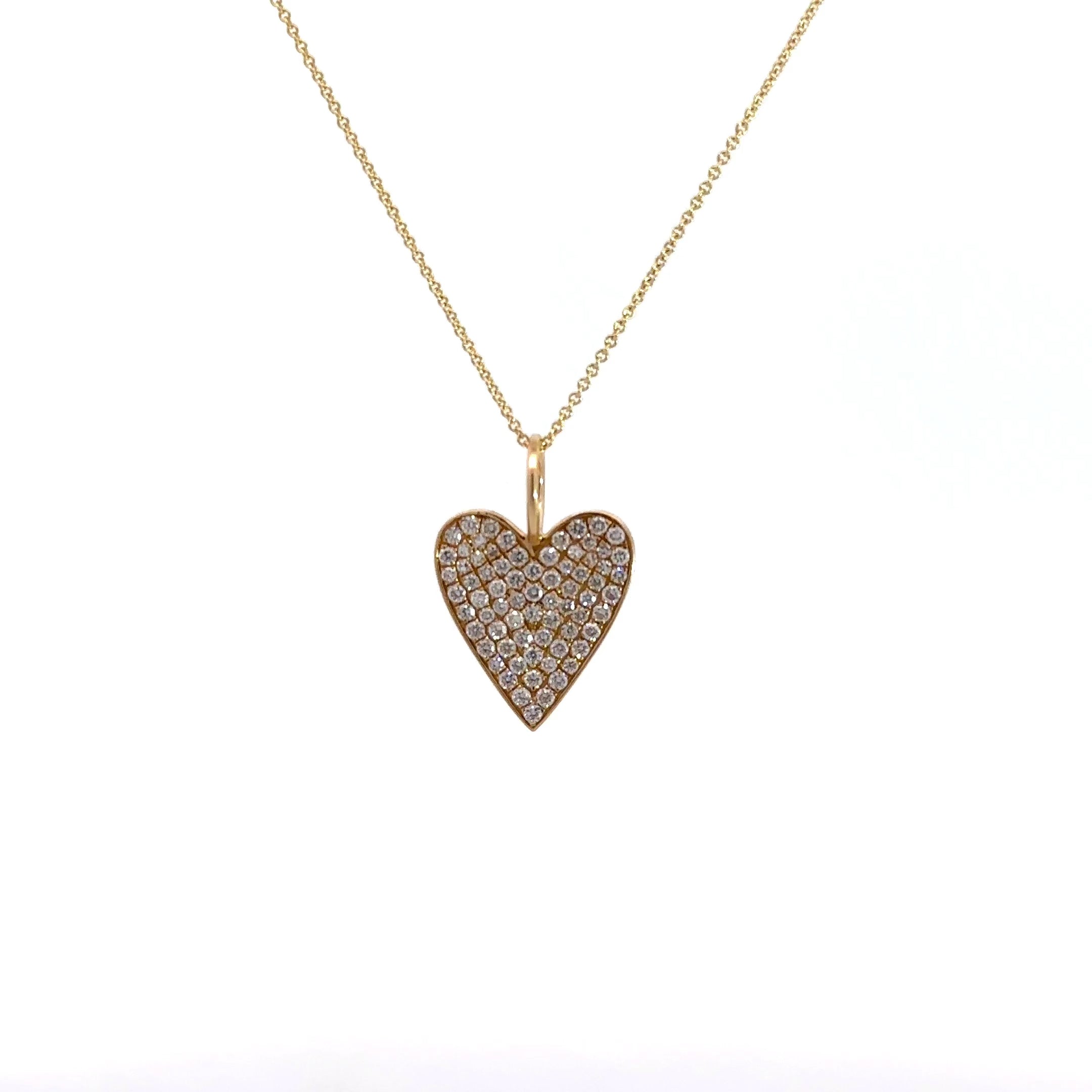 Introducing the exquisite 14 karat gold pavé diamond heart pendant, a shimmering masterpiece that will captivate your heart and elevate your style. Pendant Only. Shown with additional chains.