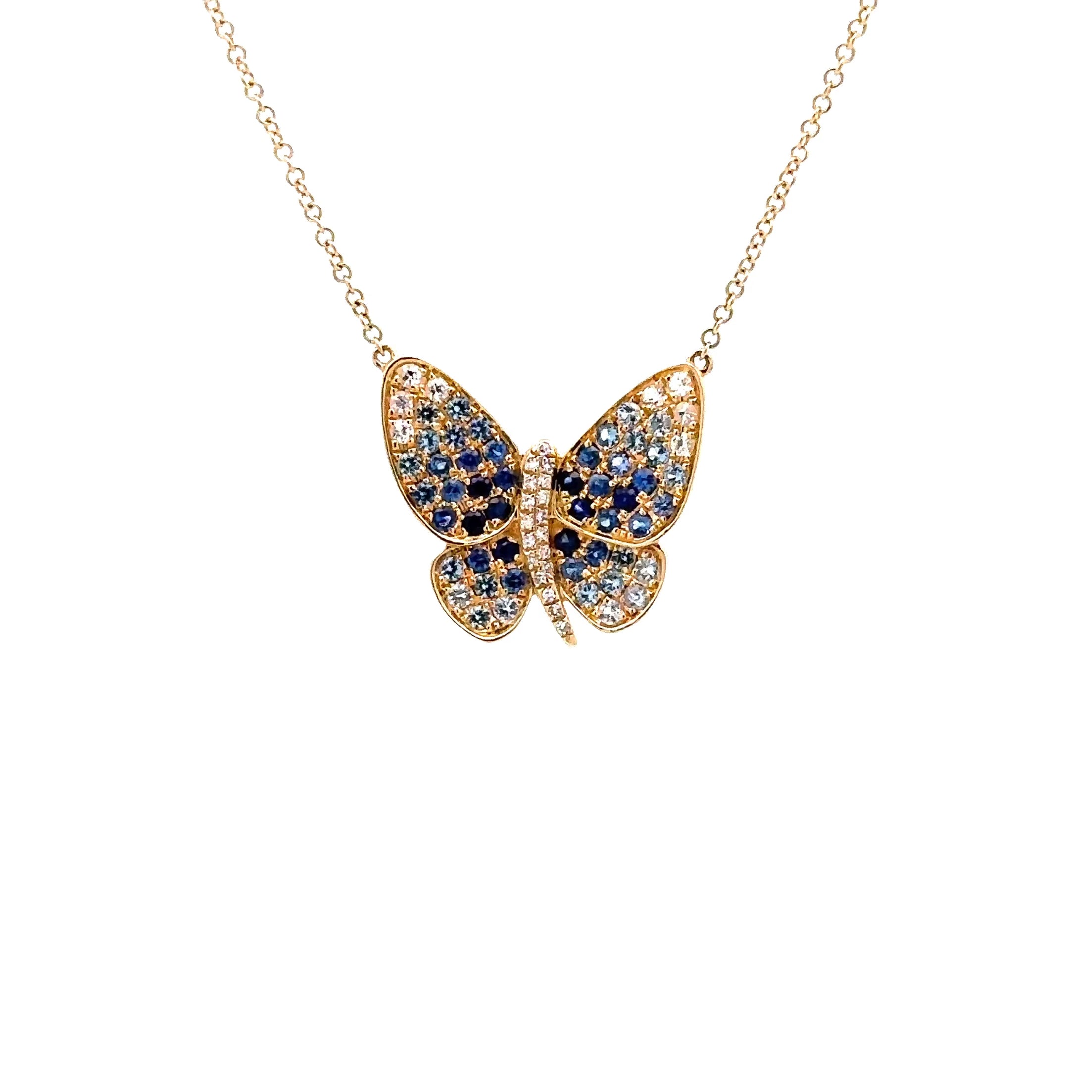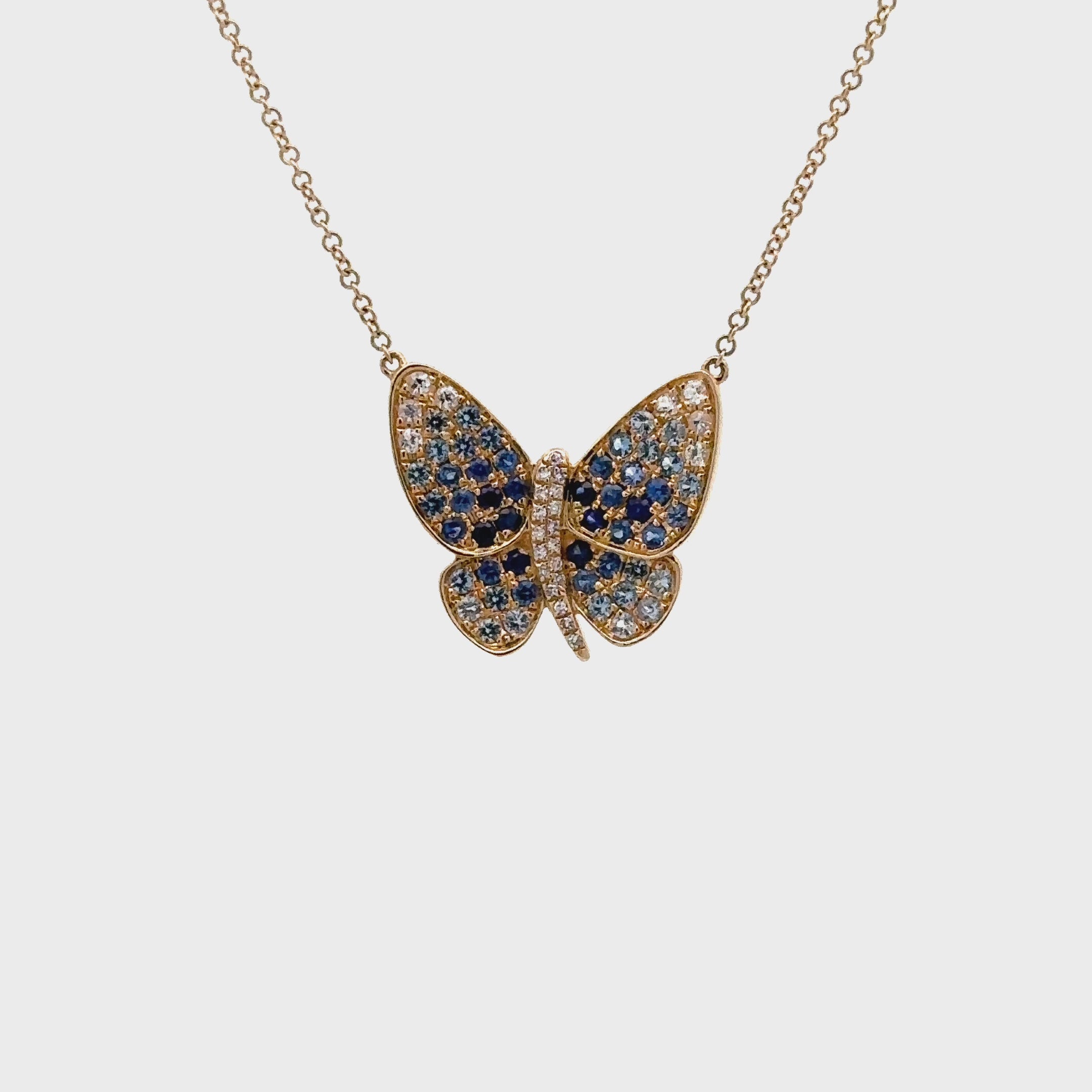 WD1324 14kt Gold Ombre White and Blue Sapphire Butterfly Necklace