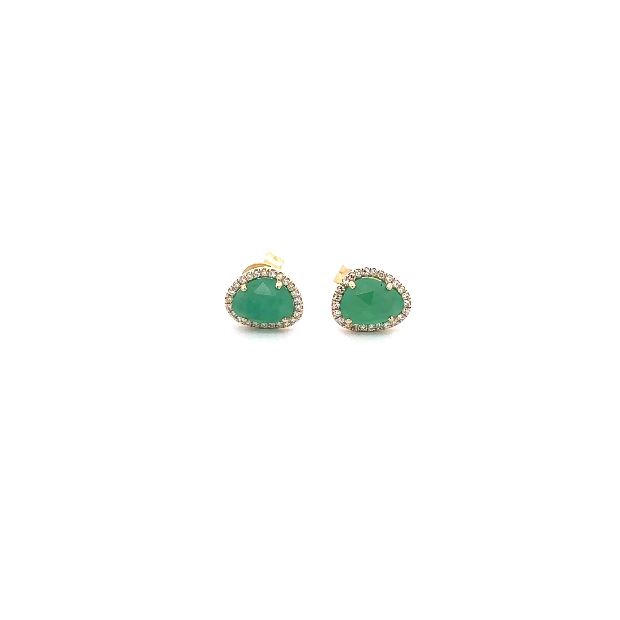 WD1353 14KT Gold Organic Shaped Emerald with Diamond Halo Stud Earrings