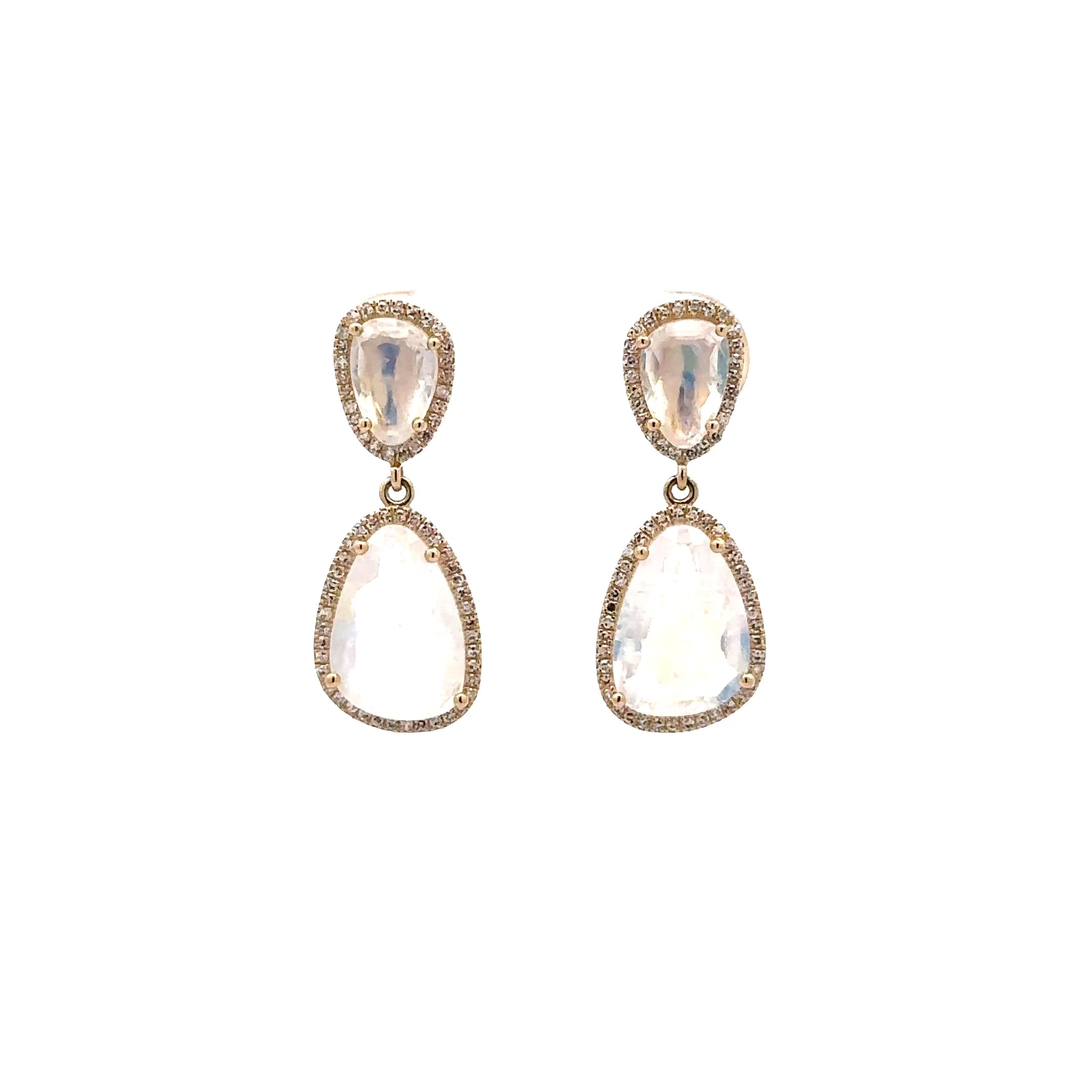 WD1670 14KT Gold Double Moonstone Drop with Pave Diamond halos