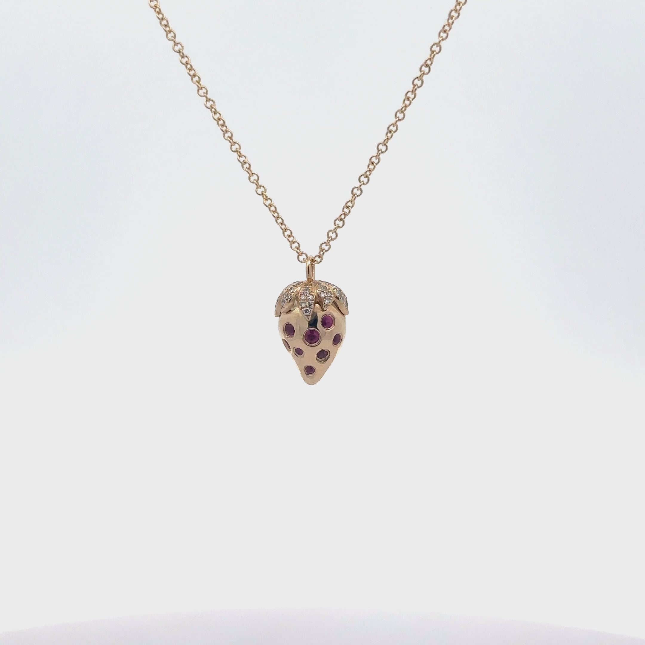 WD1681 14kt Gold Strawberry Pendant Necklace with Rubys and Diamonds