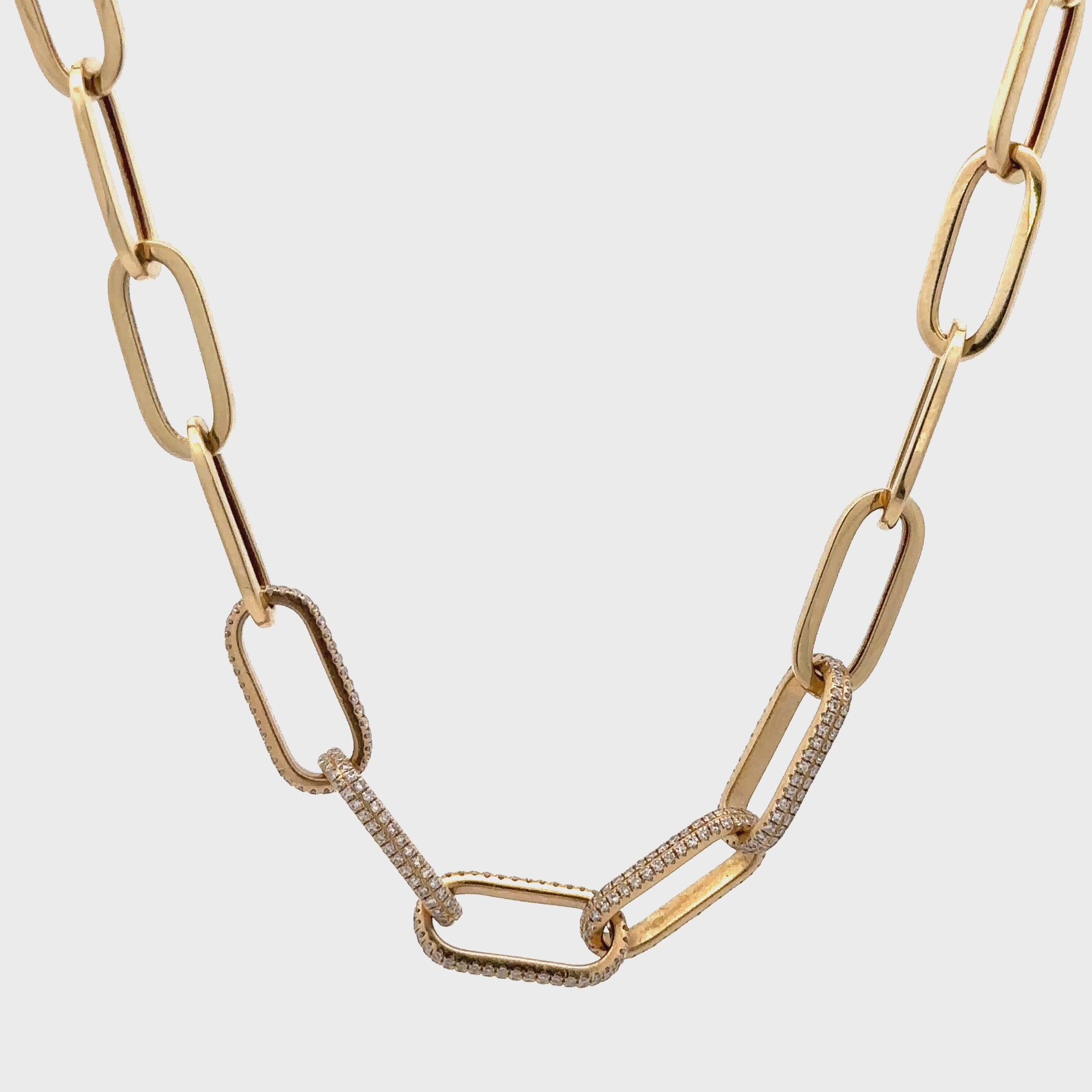 WD1699 14kt Gold PaperLink Chain With Pave Diamonds