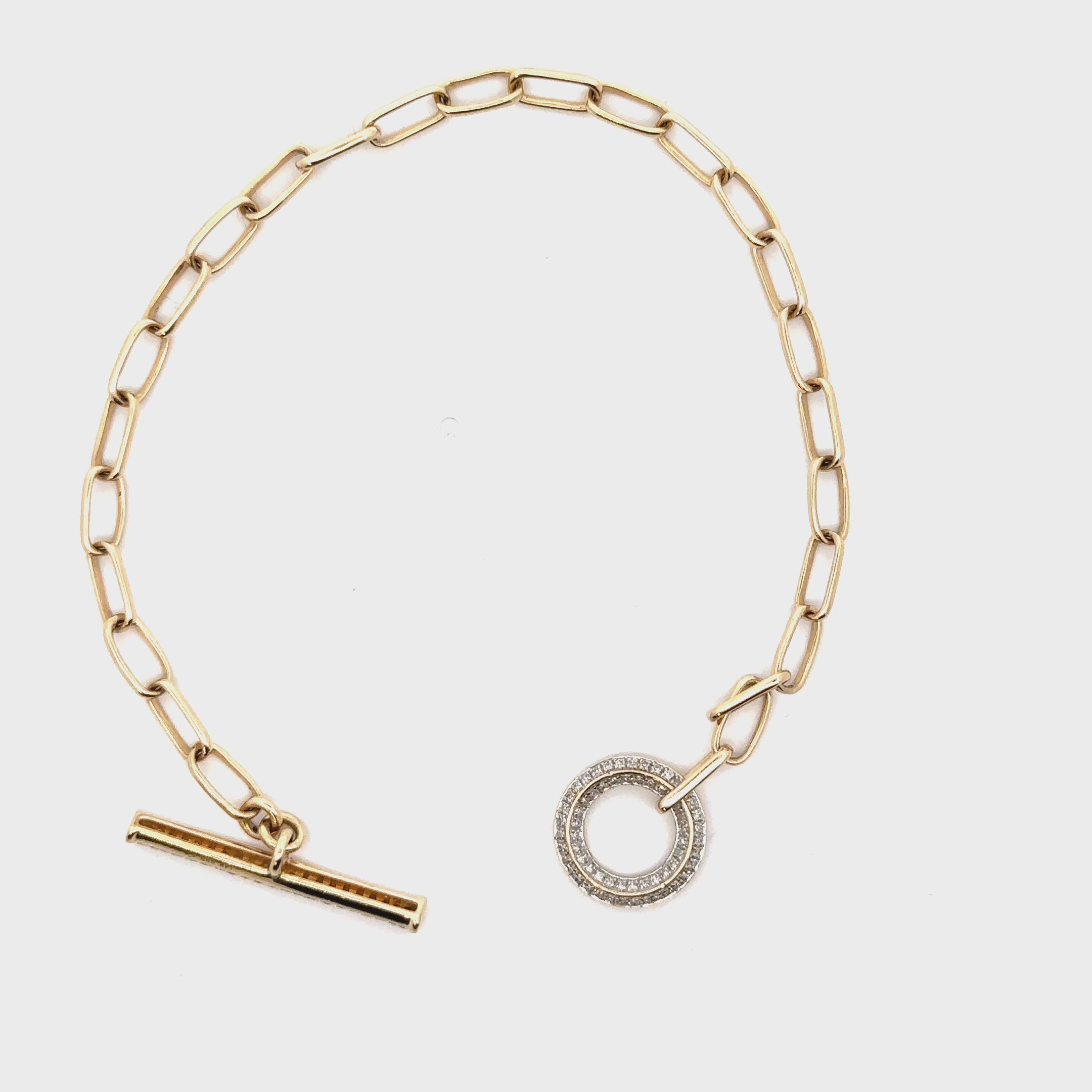WD1703 14kt Gold Paperlink Bracelet with Pave Diamond Toggle Clasp