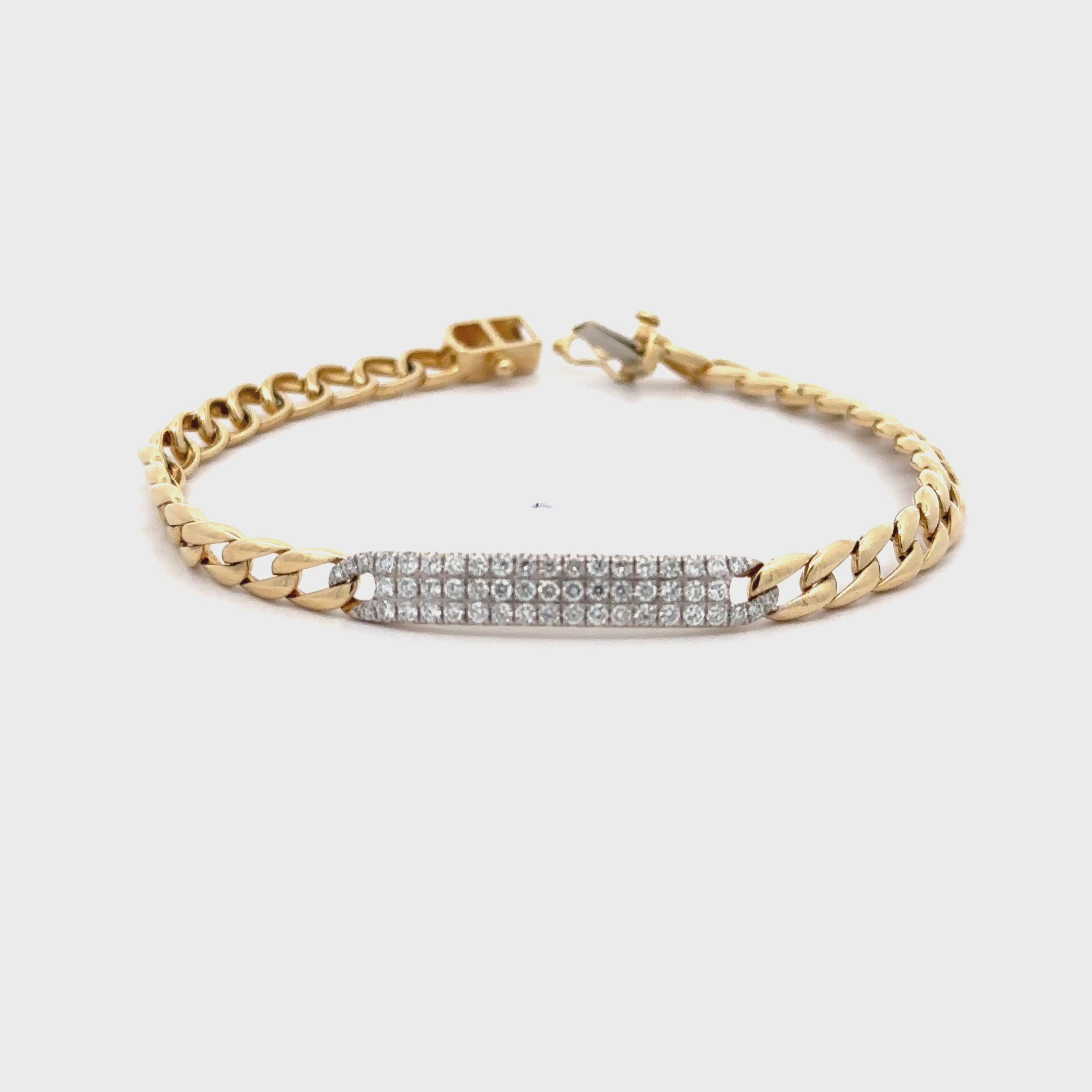 This exquisite 14kt Gold Diamond Id Braceelt features a stunning combination of luxurious gold and sparkling diamonds. The intricate design showcases a row of perfectly set diamonds, adding a touch of elegance and sophistication to any outfit. Ideal for special occasions or as a timeless gift, this bracelet is a true statement piece.