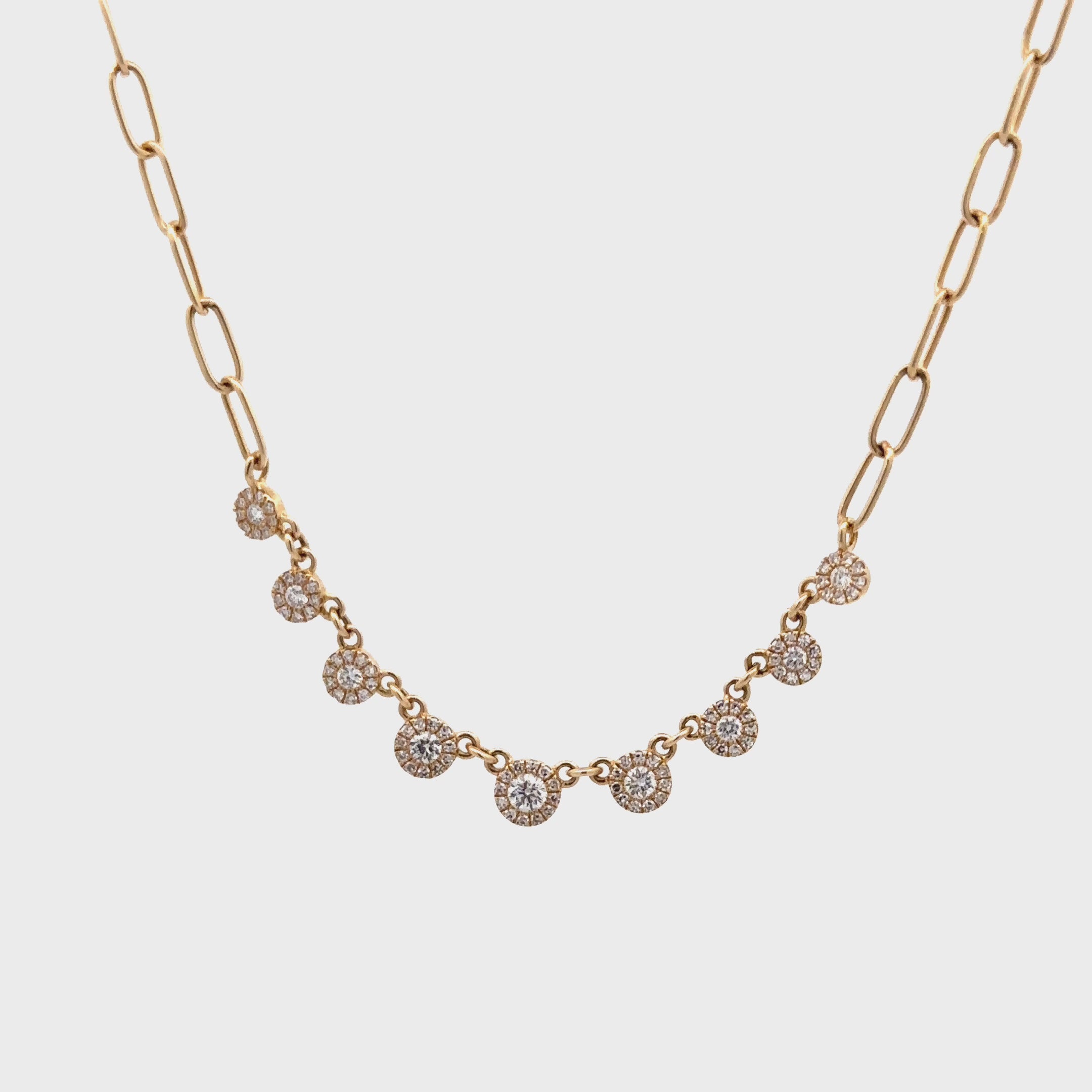 WD1710 14kt Gold Paper Link Chain with 9 Diamonds Wrapped with Diamond Halos Necklace