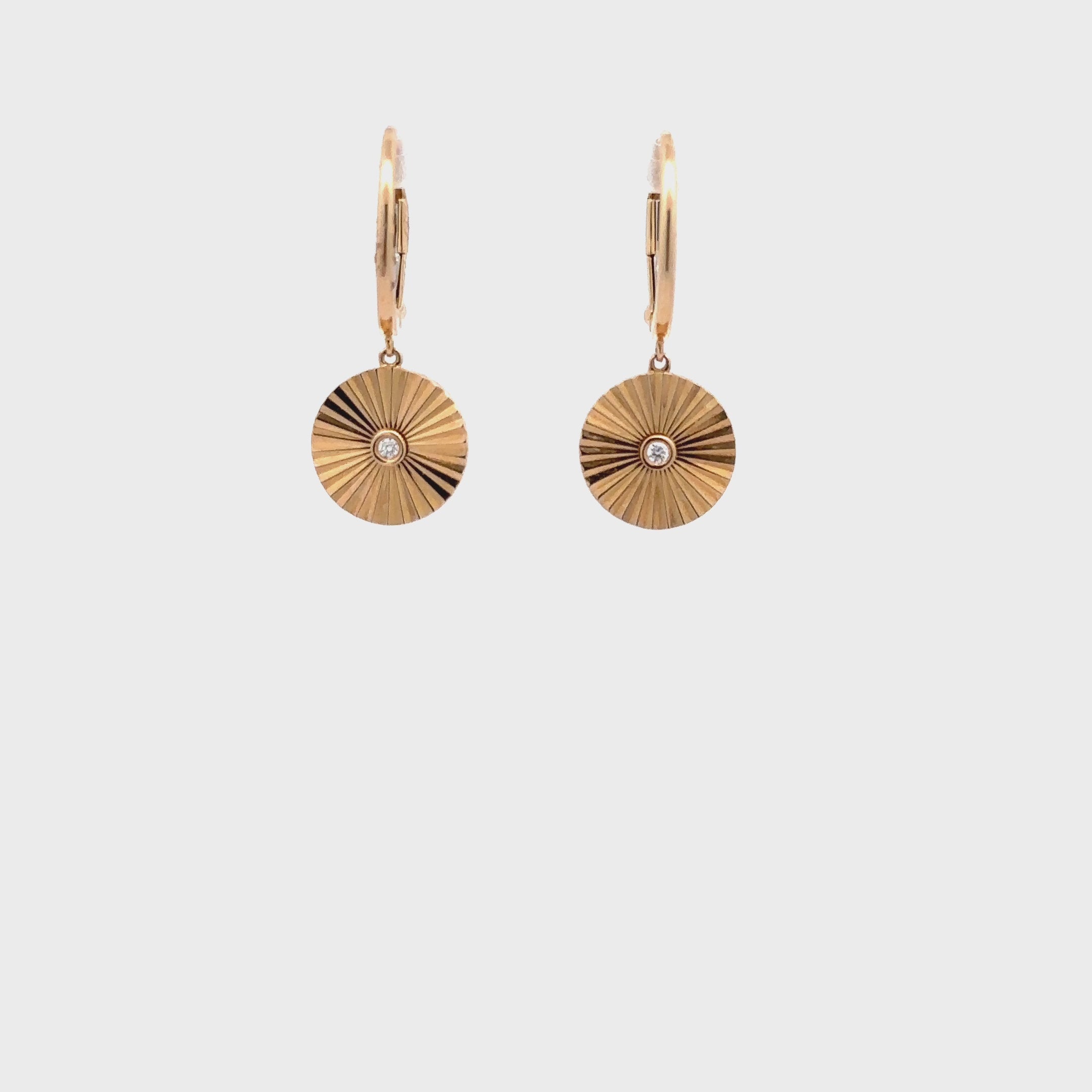 These exquisite 14kt gold earrings feature a radiant design, each centered with a sparkling diamond accent. Perfect for adding a touch of elegance to any outfit, they capture the light beautifully, making them a standout accessory for both day and night.