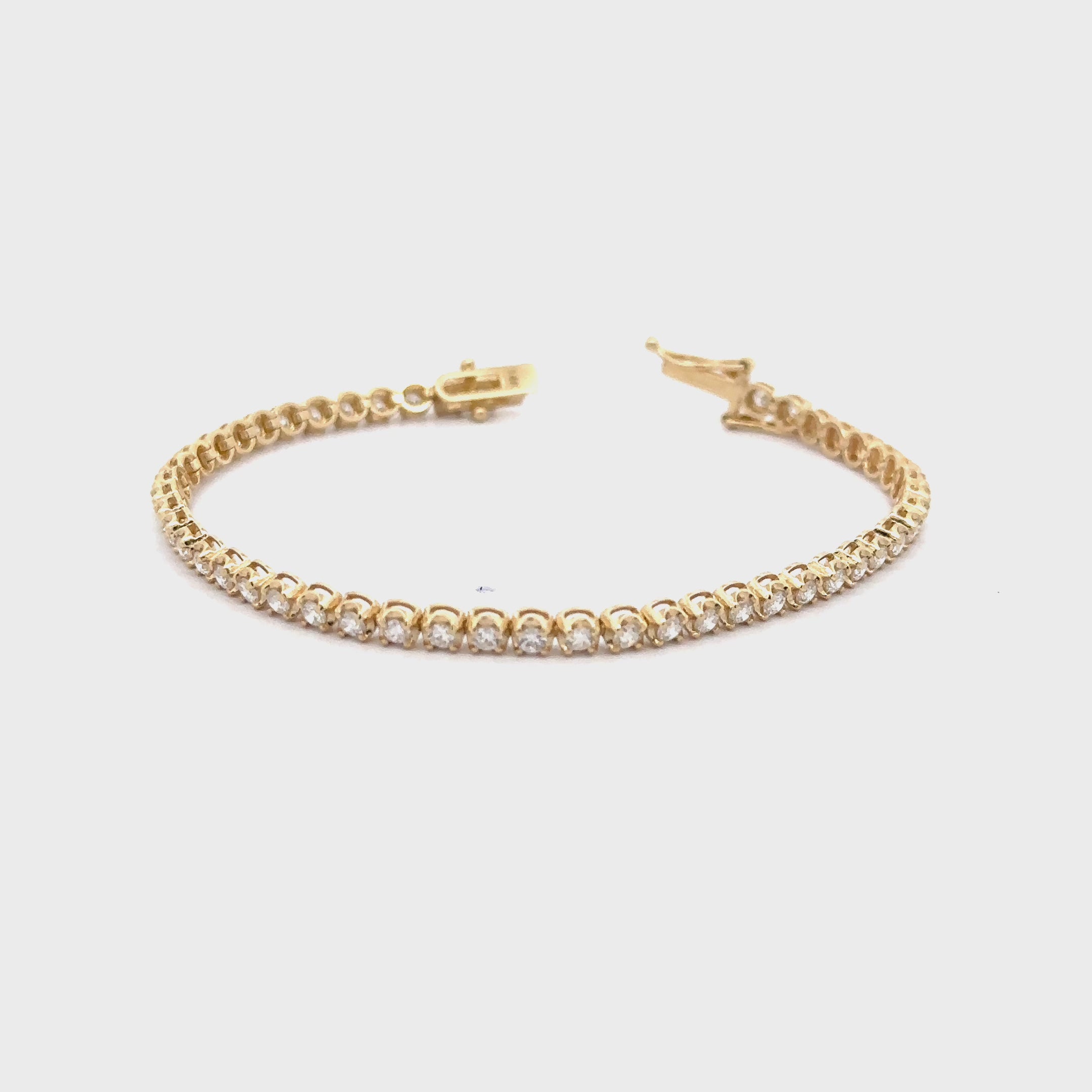 This exquisite 14kt gold tennis bracelet is adorned with sparkling diamonds, making it a perfect accessory for any elegant occasion. The intricate design and high-quality craftsmanship ensure that this piece will be cherished for years to come.