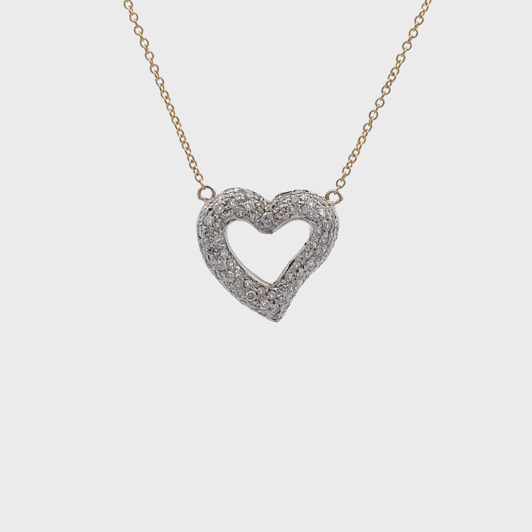 WD1841 14kt Gold Pave Diamond Open Heart Necklace