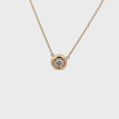 Exude elegance with this minimalist diamond solitaire necklace. Featuring a brilliant cut, round diamond set in a smooth bezel of warm yellow gold, this delicate pendant hangs gracefully from a matching gold chain. The timeless design offers subtle sparkle, perfect for adding a touch of sophistication to any ensemble.