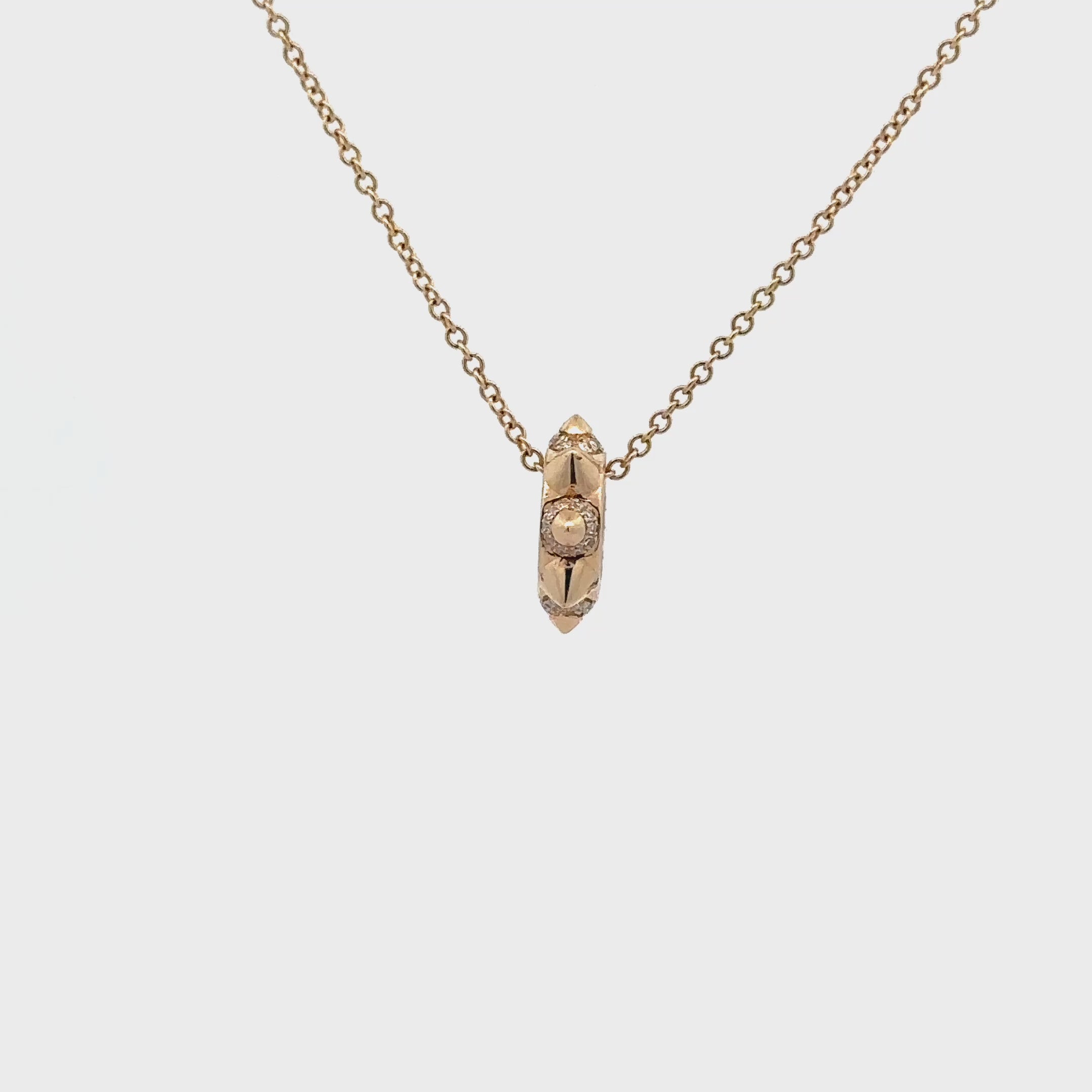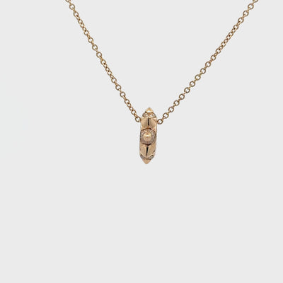 Elevate your style with this exquisite 14kt yellow gold 8 Spike Barrell with Diamond Detail. A refined statement piece with subtle edge. This handcrafted barrel pendant features a faceted design and a single round diamond at its center, creating the perfect balance of texture and shine. Its unique geometric form makes it ideal for adding to your favorite chain or layering with other charms for a personalized look