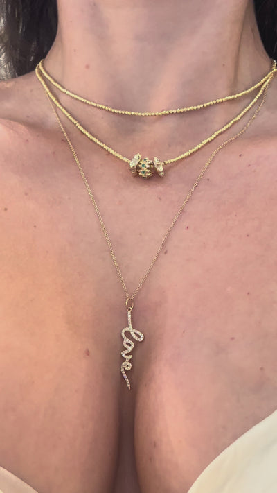 Elevate your style with this exquisite 14kt yellow gold Spike Barrel with Emerald Detail. A refined statement piece with subtle edge. This handcrafted barrel pendant features a faceted design and emeralds, creating the perfect balance of texture and shine. Its unique geometric form makes it ideal for adding to your favorite chain or layering with other charms for a personalized look