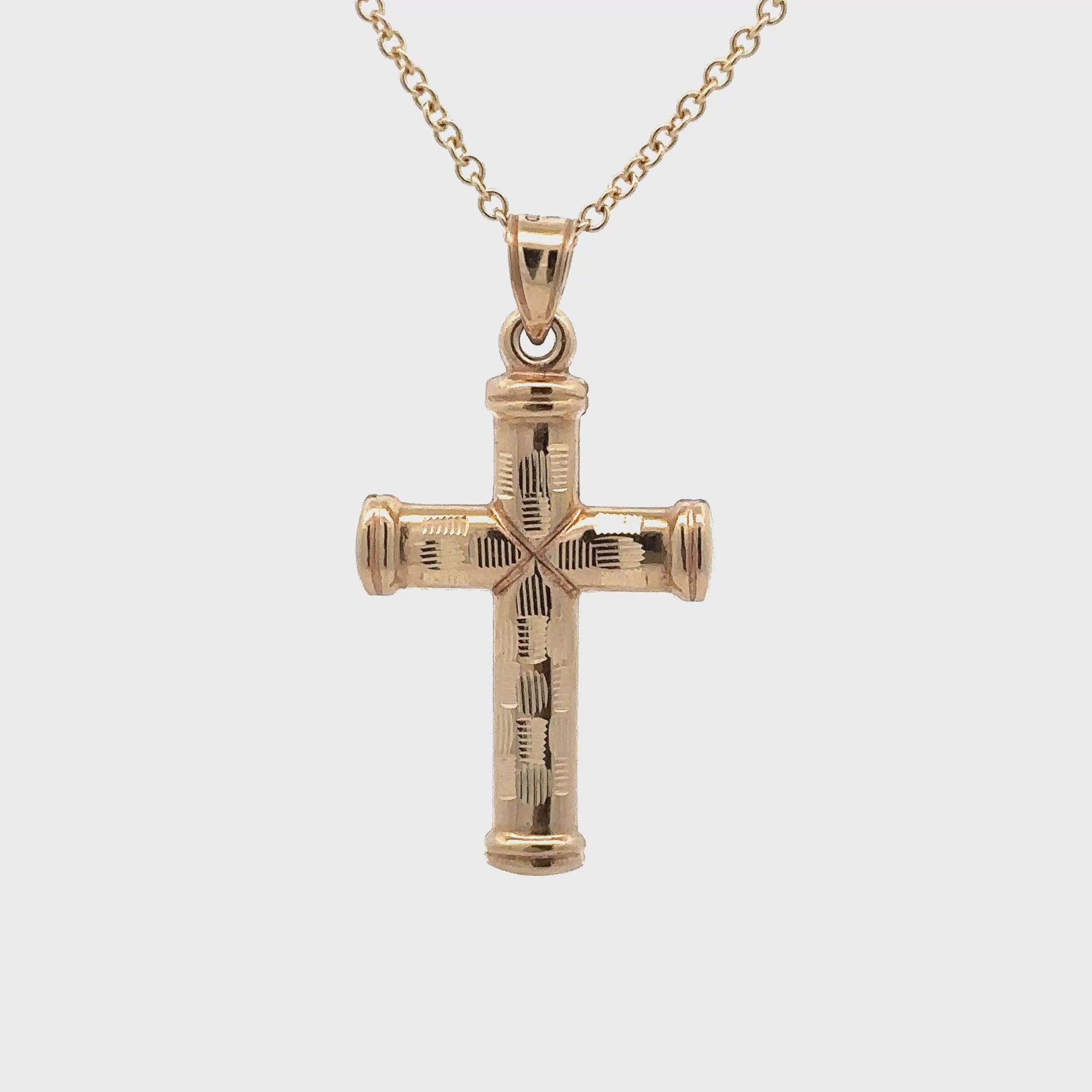 This timeless design features a beautifully crafted cross pendant, exuding elegance and faith. A perfect accessory for everyday wear or special occasions, this cross adds a touch of sophistication to any outfit. Cross only. Shown with optional chain.