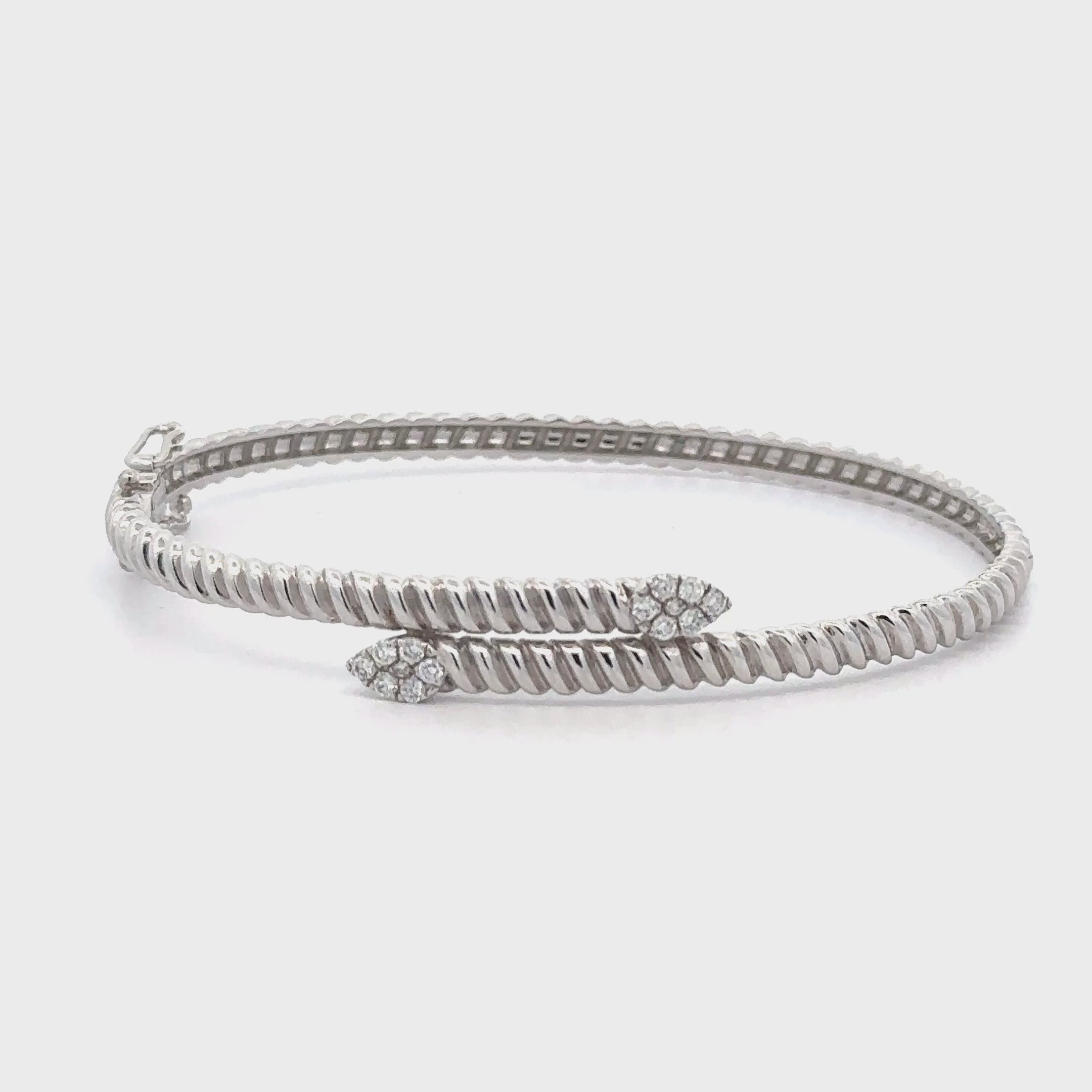 Embrace understated elegance with this captivating white gold bangle. Meticulously crafted in 14kt white gold, this stylish bangle features brilliant round cut diamonds. Its sleek and minimalist design ensures effortless sophistication for any occasion. Elevate your jewelry collection with this timeless diamond bangle.