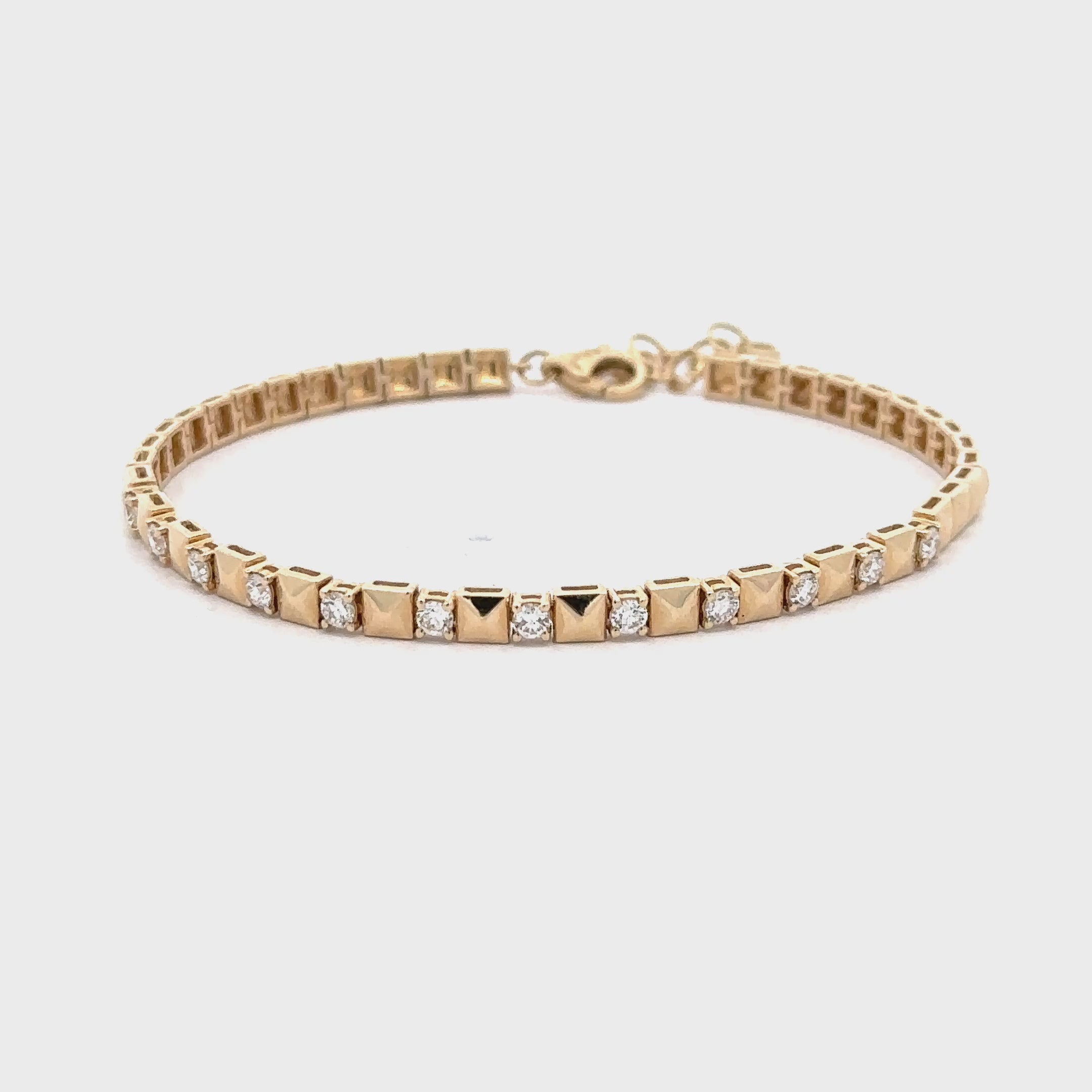 Elevate your style with this exquisite yellow gold square stud diamond bracelet. Featuring a series of meticulously set brilliant cut diamonds, this bracelet showcases a harmonious blend of classic design and understated luxury. Its seamless construction and secure clasp ensure a comfortable fit, making it an ideal choice for everyday elegance or special occasions.