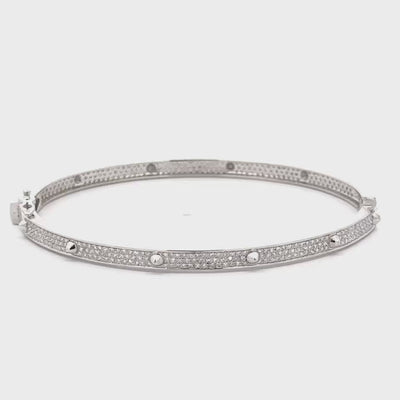 This elegant bangle is crafted from gleaming white gold. It is meticulously adorned with a continuous row of pave diamonds, offering a scintillating display of light. The seamless design and secure clasp make it a comfortable and stylish accessory for any occasion.
