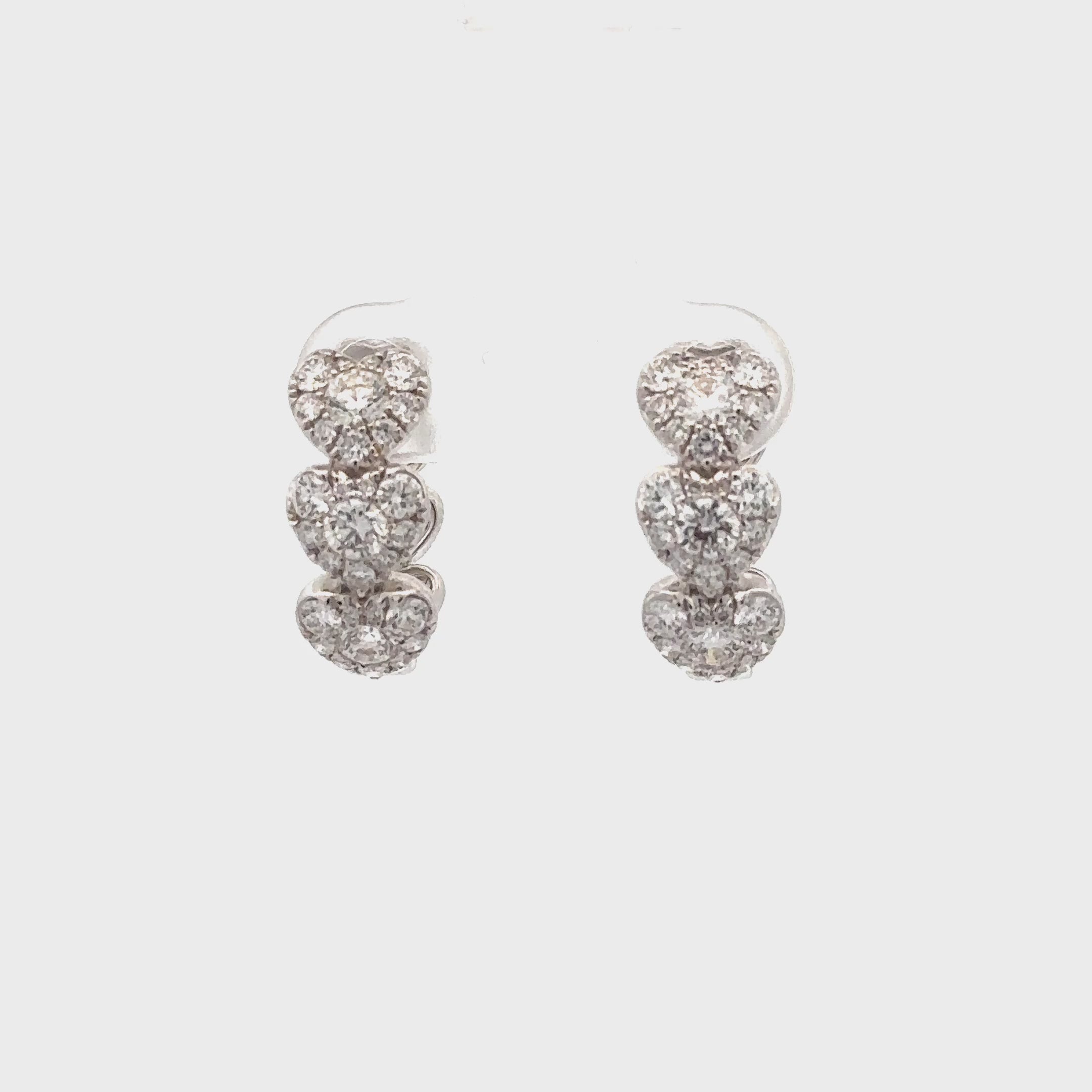 Elevate your style with these exquisite white gold heart shaped hoop earrings, featuring brilliant diamonds. A timeless design that exudes sophistication, perfect for adding a touch of glamour to any ensemble. These earrings are expertly crafted to ensure maximum brilliance and enduring beauty.