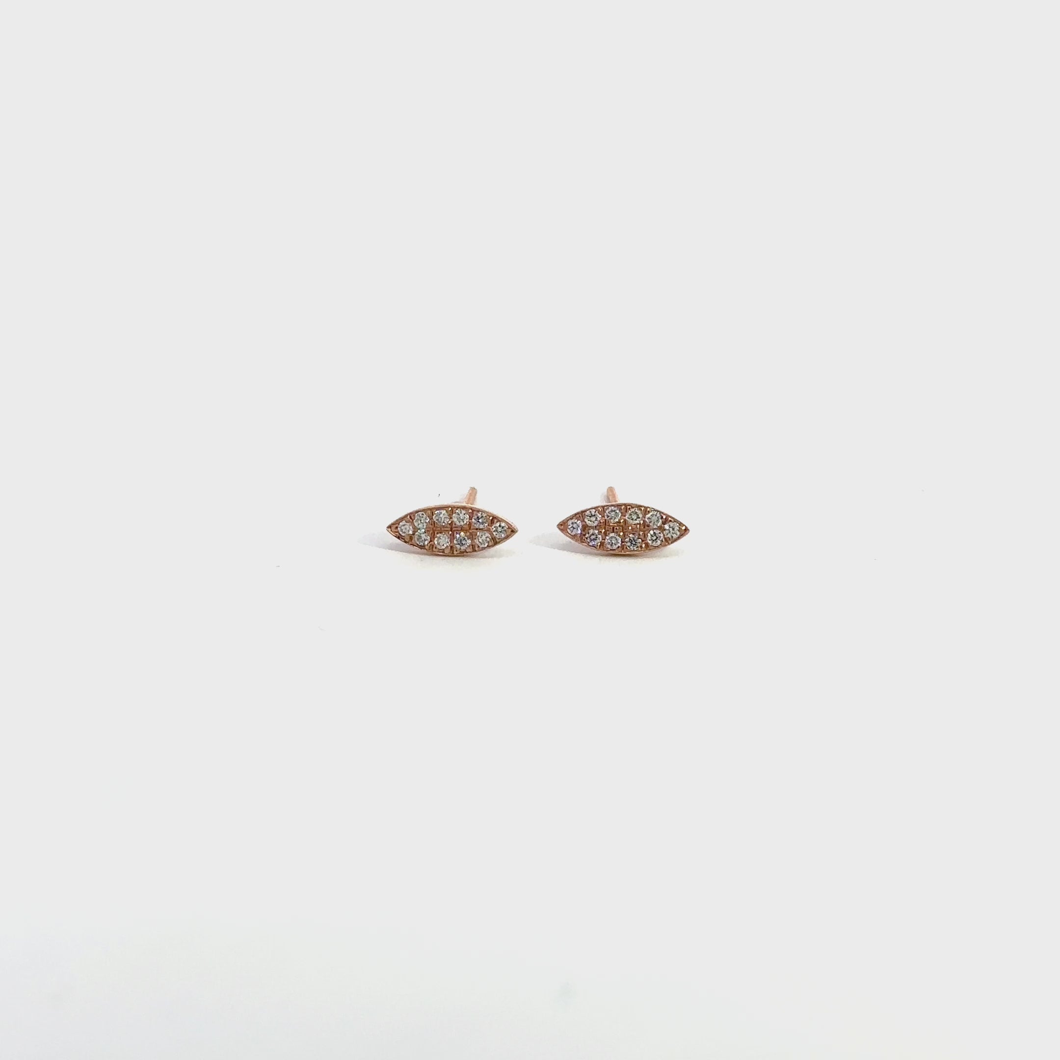 Inspired by a daisy petal. Pave diamond petal shaped studs.