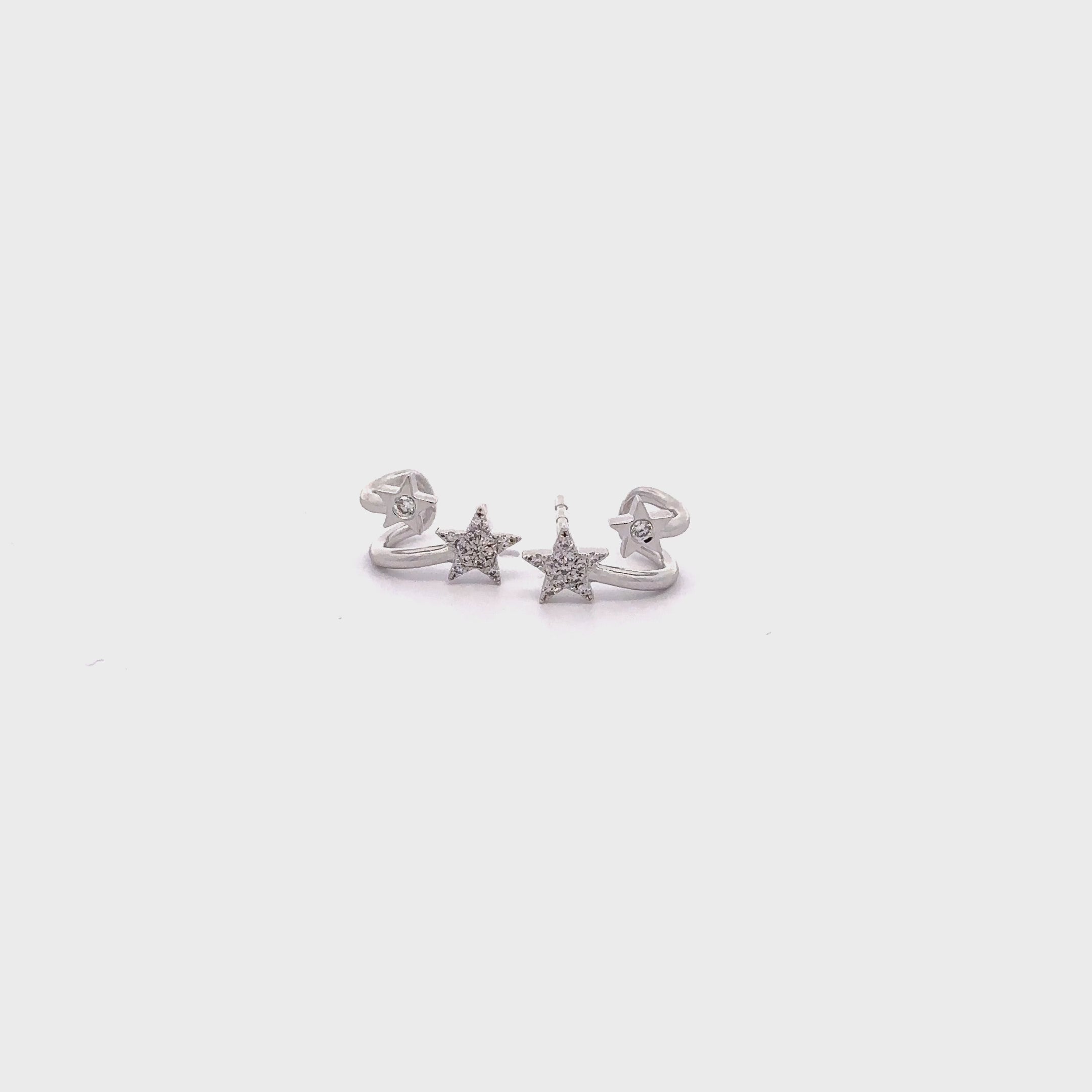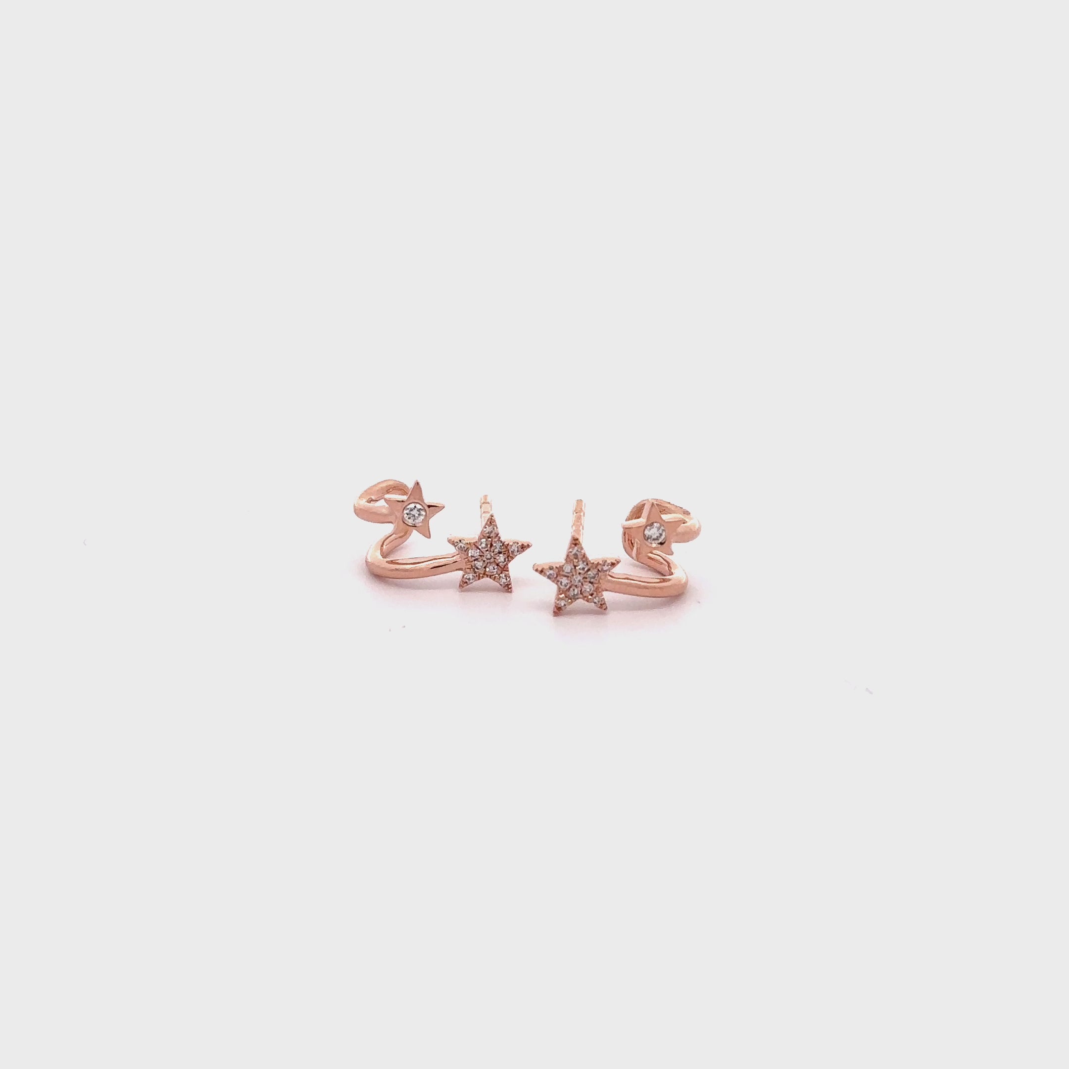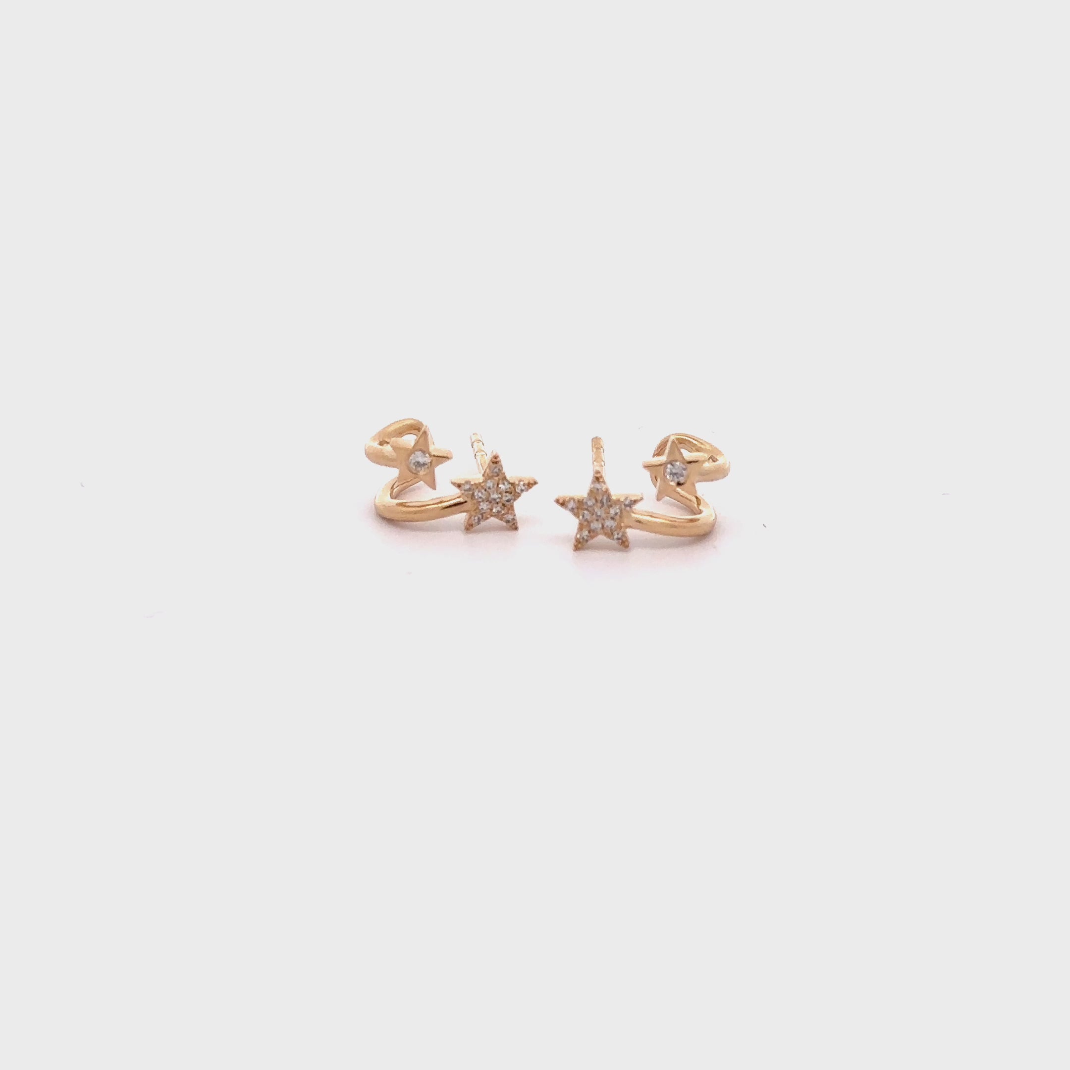 WD651 14kt and Diamond Double Star Cuff Earrings